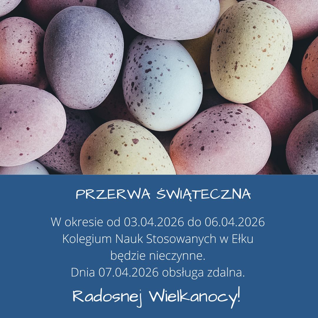 W okresie od 03.04.2026 do 06.04.2026 Kolegium Nauk Stosowanych w Ełku bedzie nieczynne.
